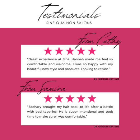What a wonderful spring we’ve had so far! ☀️🌷🌼 Thank you to everyone who left reviews at our salons this month, your feedback is always acknowledged and appreciated. 💖🫶 Shout out to our stylists Zac, Ashley, Joe, and our emerging stylist Hannah for making it into this month’s highlights! Thank you to everyone who makes Siné Qua Non Salons warm, welcoming, and artistic!